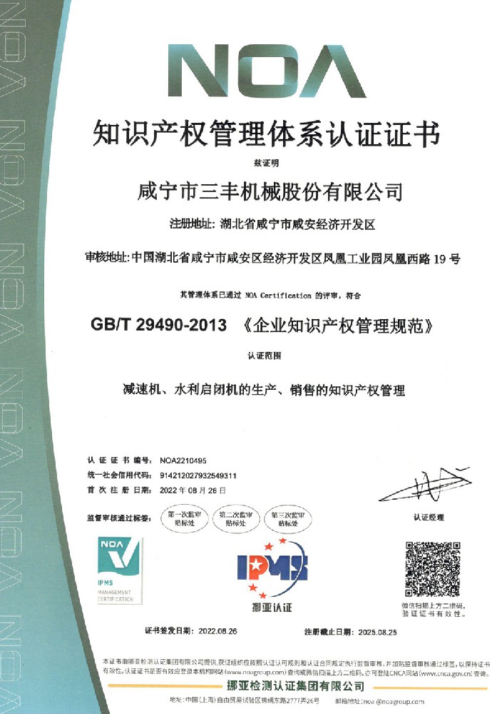 知識產權管理體系認證證書